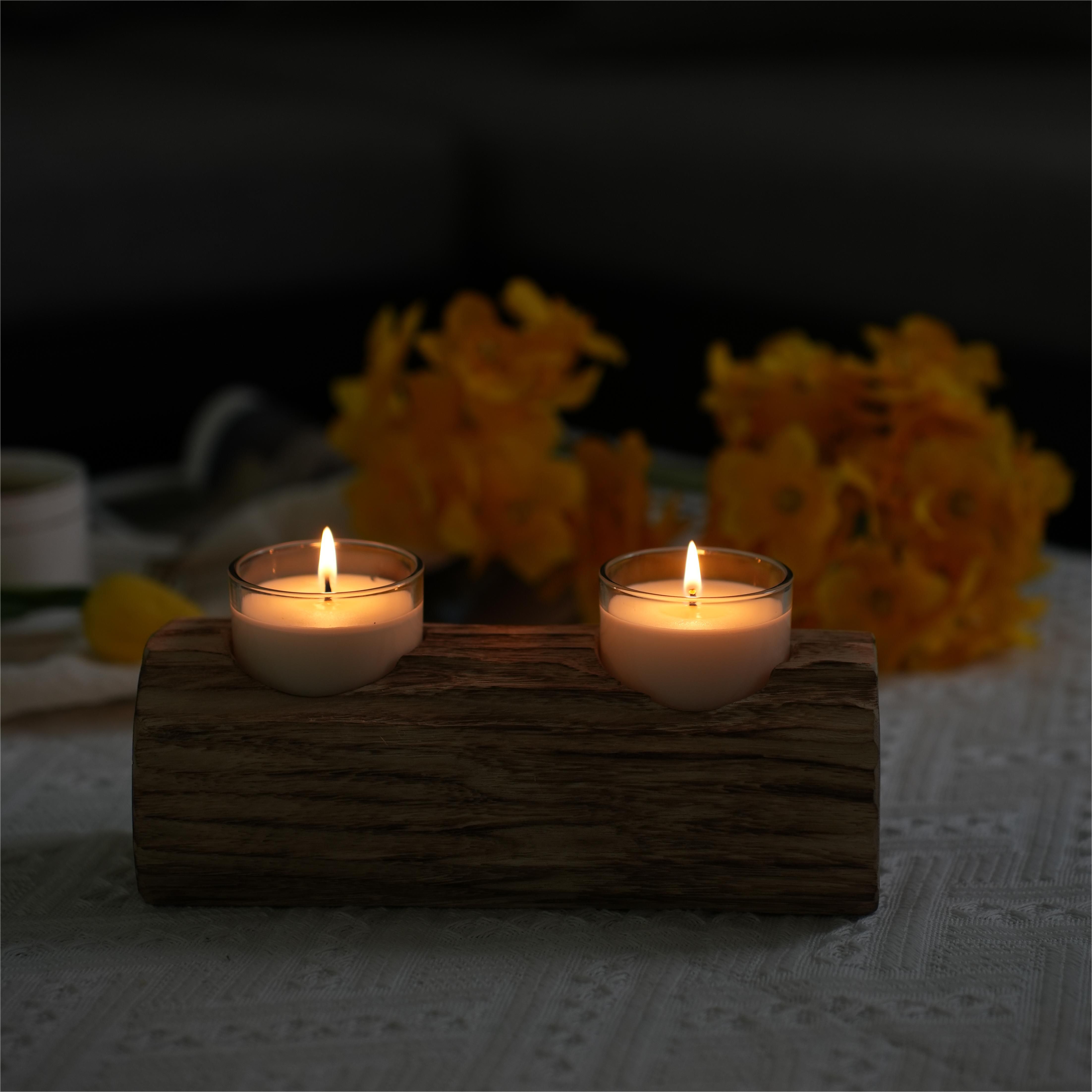 8.66'' L Brown Dual-Compartment Wooden Candle Holder