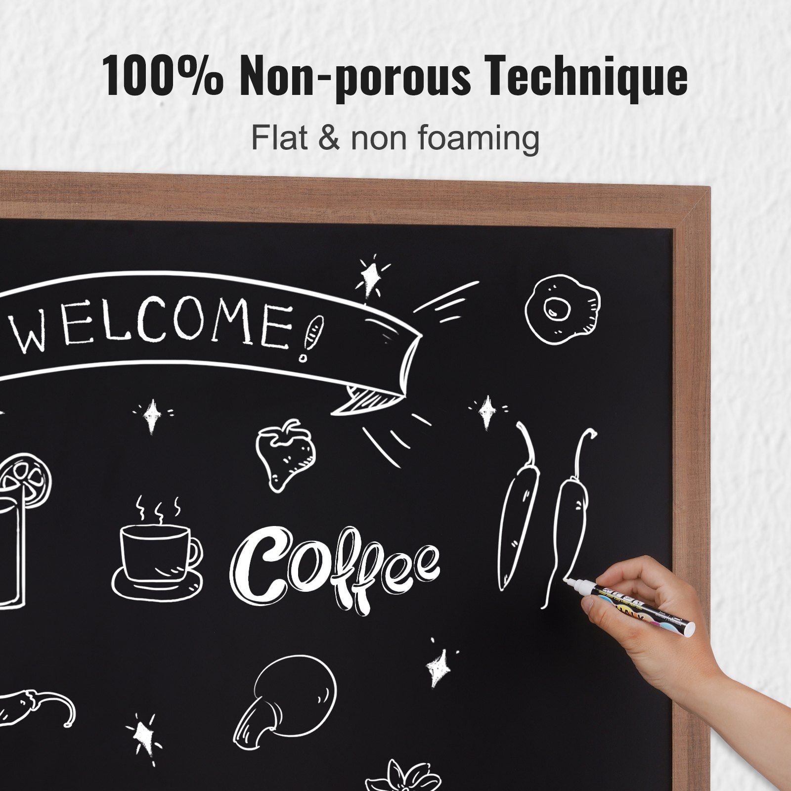 3.Durable & Sleek Material: This chalkboard frame surface adopts a high-quality steel plate with frosting treatment to enhance your writing experience and provides a perfect background for vibrant creativity. Crafted with a rustic frame, our blackboard is stunning and incredibly stable. Show off your writing skills!